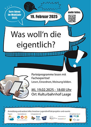 Wir wollen euch eine Stimme geben. Deswegen soll es für unsere JugendTreffs einen Rat geben, der alle vier Standorte zusammenbringt und für die Interessen der Kinder und Jugendlichen einsteht. Dazu veranstalteten wir Info-Treffen in Laage, Sabel, Kronskamp und Kritzkow. 2026 soll das erste Treffen stattfinden.